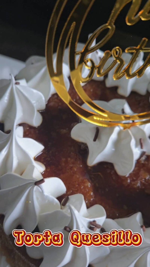 Pastel combinado de una parte de ponque y la otra de quesillo.